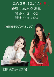 ◇【クリスマスコンサート】 ※2025年12月14日(日)のコンサートは「ヴァイオリンとピアノによるクリスマスコンサート」を 開催いたします。 チケット購入のお客様はこちらより必要事項をご記入の上お申し込みください。